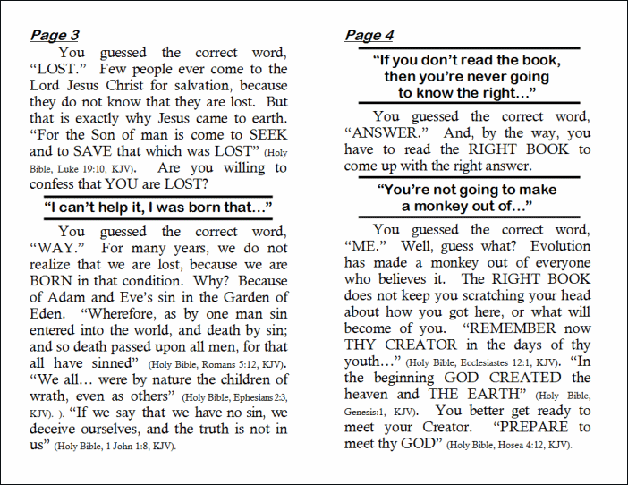 You guessed the correct word, “ME.” Well, guess what? Evolution has made a monkey out of everyone who believes it. The RIGHT BOOK does not keep you scratching your head about how you got here, or what will become of you. “REMEMBER now THY CREATOR in the days of thy youth…” (Holy Bible, Ecclesiastes 12:1, KJV). “In the beginning GOD CREATED the heaven and THE EARTH” (Holy Bible, Genesis:1, KJV). You better get ready to meet your Creator. “PREPARE to meet thy GOD” (Holy Bible, Hosea 4:12, KJV).