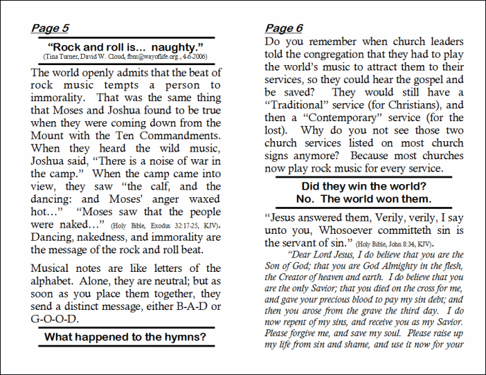 The world openly admits that the beat of rock music tempts a person to immorality. That was the same thing that Moses and Joshua found to be true when they were coming down from the Mount with the Ten Commandments. When they heard the wild music, Joshua said, “There is a noise of war in the camp.” When the camp came into view, they saw “the calf, and the dancing: and Moses' anger waxed hot…” “Moses saw that the people were naked…” (Holy Bible, Exodus 32:17-25, KJV). Dancing, nakedness, and immorality are the message of the rock and roll beat.